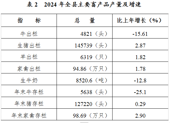 全年畜牧业生产形势稳定,主要畜牧产品产量、畜禽存栏保持平稳。