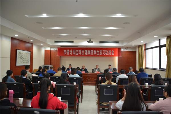为加快实施统计人才培养战略,给优秀大学生提供更广阔的实习工作平台,让更多的优秀人才在宝鸡实习锻炼,参加工作,全力助推我市统计工作追赶超越,9月5日下午,市统计局召开宝鸡文理学院首批统计专业大学生实习进点动员大会,安排部署首批统计专业大学生进点实习事项,明确实习目标,对接各项工作任务。市统计局党组书记、局长张宁同志出席会议并作了重要讲话,宝鸡文理学院数学与信息科学学院党总支书记郝满义同志进行了实习进点动员。首批统计专业大学生拟进点实习的渭滨区统计局、金台区统计局、高新管委会经发局、市局相关科室、以及宝鸡建安公司、宝鸡叉车厂、宝鸡自来水公司等单位(部门)领导参加会议。