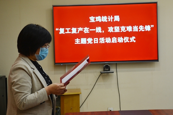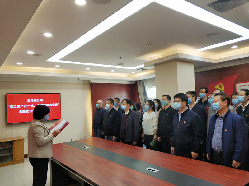“全局党员干部要积极投身复工复产一线,充分发挥共产党员先锋模范作用,应对新冠疫情影响,持续加大对重点县区、重点企业、重点项目的监测和分析力度,为党委政府、为企业出谋划策解难题……”为进一步摸清具体情况,找准堵点、痛点、难点,促进企业复工复产达产,4月26日上午,在太阳城娱乐“复工复产在一线,攻坚克难当先锋”主题党日活动启动仪式上,党员干部身着正装、佩戴党徽,面对鲜红的党旗,庄严而立,局党组书记、局长王丽发出动员令,5名党组成员带队,分赴重点县区开展主题调研。新冠疫情发生以来,市统计局坚持党建统领、全力以“复”、攻坚克难,充分发挥共产党员先锋模范作用,展示统计担当,为全市经济高质量发展贡献统计力量。