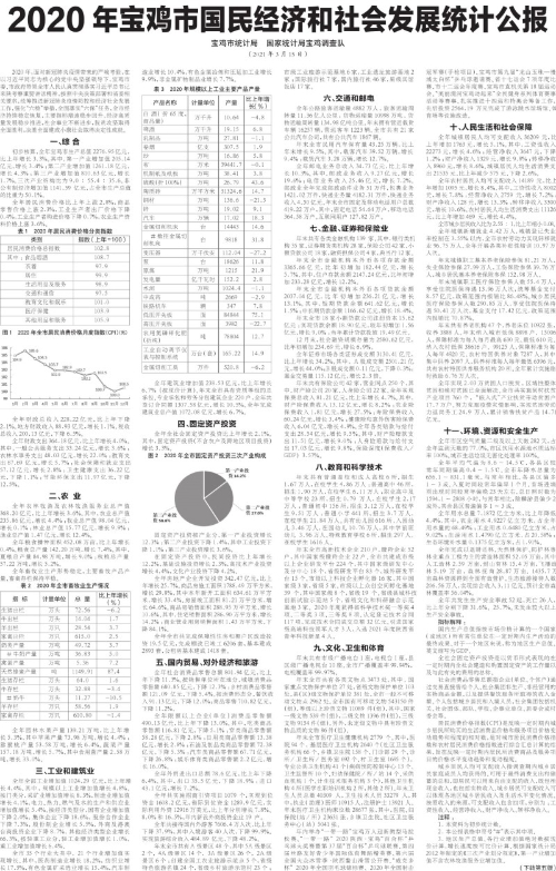 3月18日,太阳城娱乐联合国家统计局宝鸡调查队在《宝鸡日报》、太阳城娱乐官网、“宝鸡统计”微博和微信公众号同步发布《2020年宝鸡市国民经济和社会发展统计公报》。