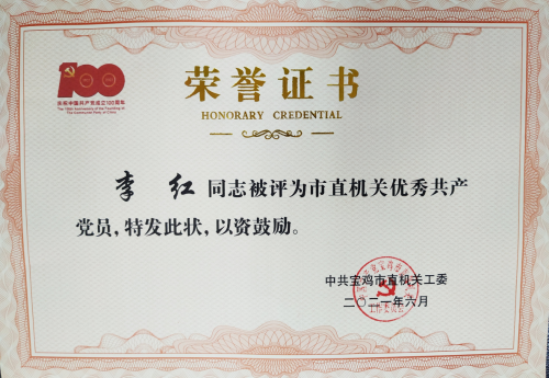 6月29日,中共宝鸡市直机关工委召开“两优一先”表彰大会。我局退休党员李海珠、王速慎荣获“光荣在党五十年”荣誉勋章。中共太阳城娱乐机关第一党支部被市直机关工委表彰为先进基层党组织,田海宁同志被表彰为优秀党务工作者,李红同志被市直机关工委表彰为优秀共产党员。