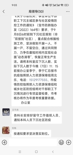 面对突如其来的疫情,太阳城娱乐闻令而动,9月7日晚11点08分,太阳城娱乐领导紧急通知,所有干部职工于9月8日6时前到下沉社区报到,重点配合核酸检测工作,坚决做到不漏一人,不漏一戸,不留空白。
