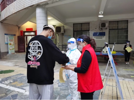 9月8日凌晨五点,天还没亮,各个社区的门口已经开始紧张忙碌起来,太阳城娱乐全体党员干部积极响应号召下沉社区,提供有力支援,弥补人员缺口,变身“大白”与“小红”。在强度最高的工作高峰期,他们甚至顾不上用餐,也放弃了轮班休息,即使再疲累,也没有一丝松懈。他们不厌其烦地反复解答居民提出的疑问,耐心细致地安抚居民们的不安情绪,配合社区做好各项日常防疫措施。